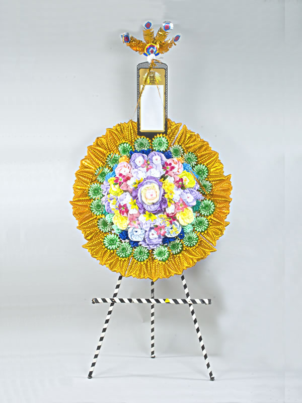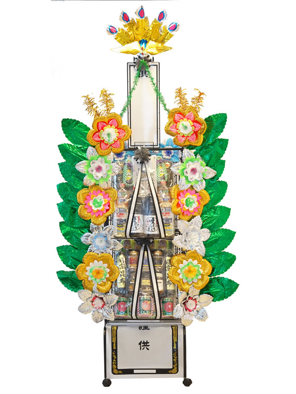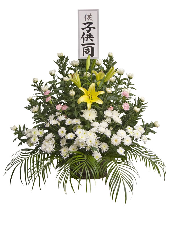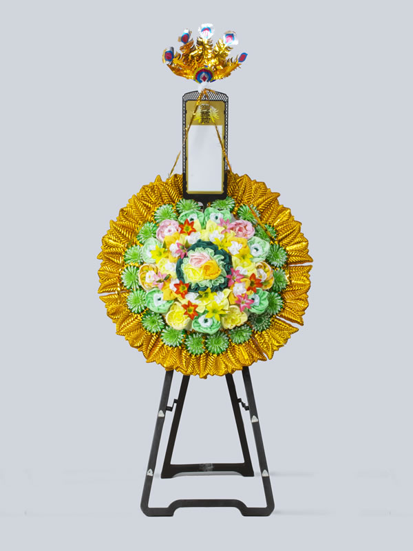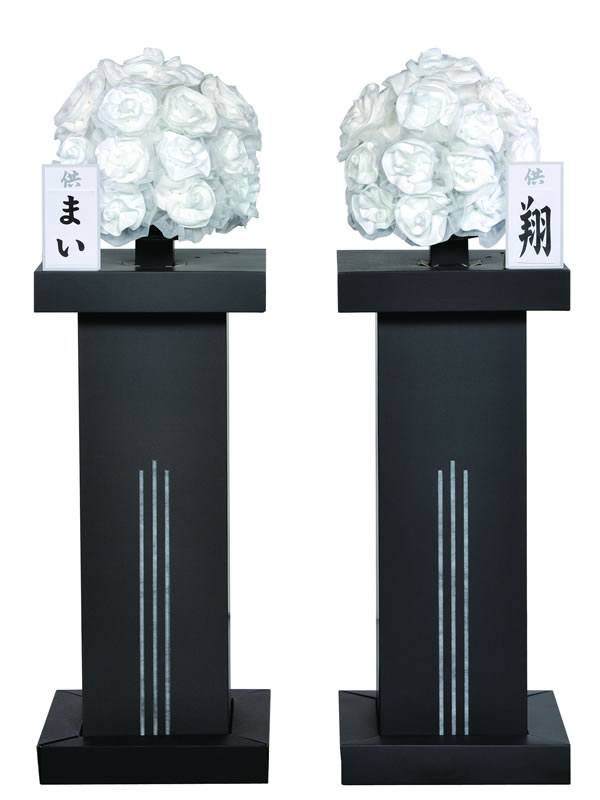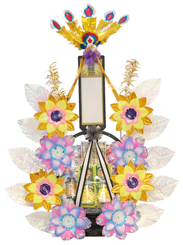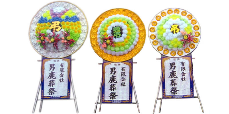 | 供花 | 花輪 | タオル花輪 | 盛篭 | 回転灯 | 灯籠 | 竹風灯 | 仏膳・香炉 | 経机 |